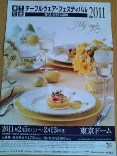 2月5日(土)~13日(日) 東京ドームにて「テーブルウェア・フェスティバル2011」が開催されます。今年もヨーロッパの様々なブランドや日本の各地の焼物、漆などテーブルウェアの全てが揃う年に一度のイベントです。 是非会場にお出掛け下さい。